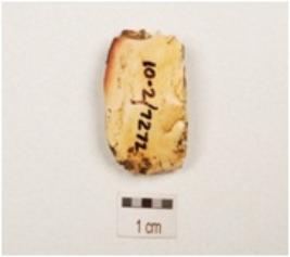 | Description / विवरण | A side struck flake made of chert with bulb on ventral, striking platform, single ridge on dorsal, triangular in section and use wear marks. |