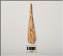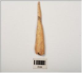 | Description / विवरण | A bone point made on a long bone, one end pointed, smoothly polished surface. |