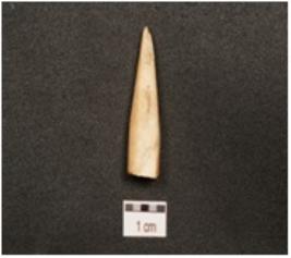 | Description / विवरण | Fragment of bone point, sharp pointed at one end, partly broken from other end and circular cross section. |