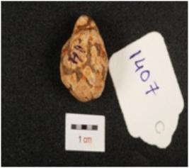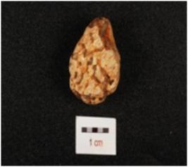 | Description / विवरण | A modified quartz pebble stone with smooth surface and crack marks. |