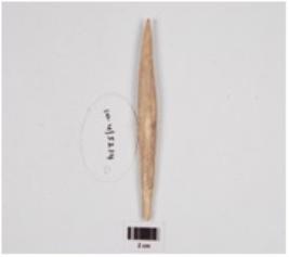 | Description / विवरण | A long bone point with rough surface, pointed at one end, broken another end and circular cross-section. |
