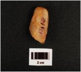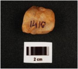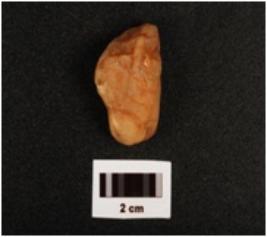 | Description / विवरण | A modified quartz pebble stone with crack marks on smooth surface and slightly chipped off. |