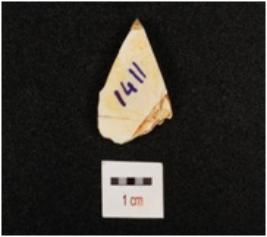 | Description / विवरण | A chert flake with smooth and slightly chipped off surface. |