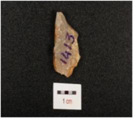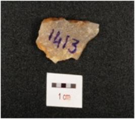 | Description / विवरण | A quartz flake with smooth surface, use wear marks on edge and partly visible crack marks. |
