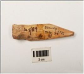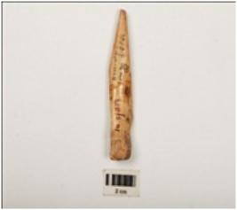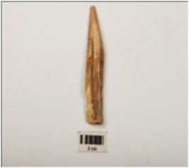 | Description / विवरण | A bone point made on a long bone, smoothly polished upper and lower surface. |