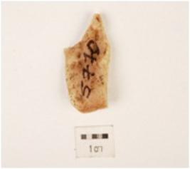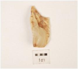 | Description / विवरण | A side flake made on chert, use wear marks along cutting edge, triangular in section, flake scars on dorsal side surface, cortex on one side surface, platform and bulb absent. |