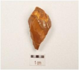 | Description / विवरण | A core made of chert with single blade scar on surface, prepared platform, ripple marks and use wear marks on edge. |