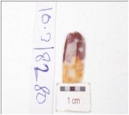 | Description / विवरण | A blade made on chert stone, double ridge on dorsal side, wear marks on cutting edge and bulb on ventral. |