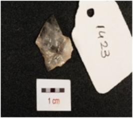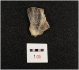 | Description / विवरण | A quartz blade with flake scars and ripple marks on surface, striking platform, diffused bulb on ventral side. Partly broken and use wear marks on cutting edge. |