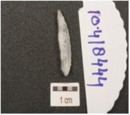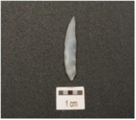 | Description / विवरण | A side scraper made on end struck chalcedony flake, diffused bulb, partly retouch cutting edge and flake scars on the surface. |