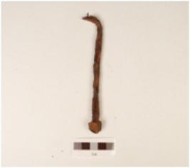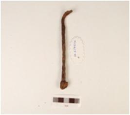 | Description / विवरण | Iron nail with a pointed end, a round head, circular cross section, corroded surface. |