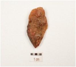 | Description / विवरण | A side struck flake made of chalcedony with striking platform diffused bulb on ventral use wear marks on edges and flattened section. |