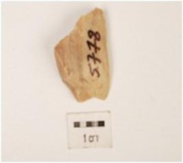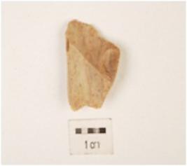 | Description / विवरण | A utilized flake made on chert, flake scars and ridge on dorsal side surface, platform and bulb absent, triangular section, use wear mark along cutting edge. |