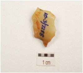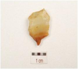 | Description / विवरण | Flake made of chalcedony with smooth surface, use wear marks on edges and trapezoidal in section. |