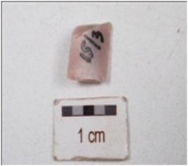 | Description / विवरण | Fragment of a blade made on chert stone, double ridge on dorsal side and wear marks on cutting edge. |