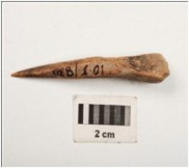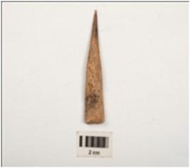 | Description / विवरण | A bone point made from bone, smoothly polished both surface, pointed at both ends. |