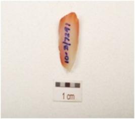 | Description / विवरण | A flake made of chalcedony with triangular in section and use wear marks on edges. |