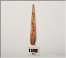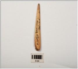 | Description / विवरण | A bone point made on a bone, smoothly polished both sides surface. |