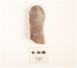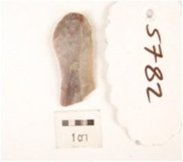 | Description / विवरण | Fragment of blade chert object, flake scars and ridge on dorsal side surface, plano convex in section, use wear marks along cutting edge, proximal bulb on ventral side surface. |