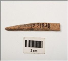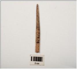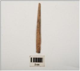 | Description / विवरण | A bone point made a bone, smoothly polished both upper and lower surface. |