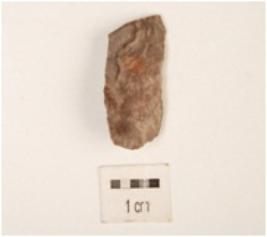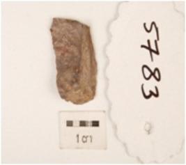 | Description / विवरण | Fragment of blade chert object, flake scars and ridges on dorsal side surface, triangular section, use wear marks along cutting edge, platform and bulb absent. |