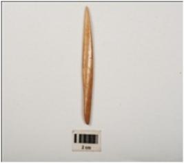 | Description / विवरण | A bone point made on a bone, smoothly polished surface both side upper and lower. |