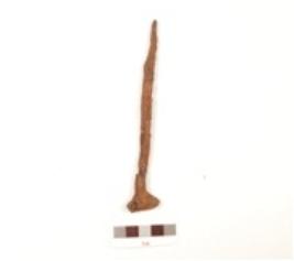 | Description / विवरण | Iron nail with one end pointed, corroded surface, head at one end, square cross section. |