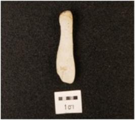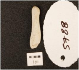 | Description / विवरण | Frgment of blade made on chert, blunt cutting edge, platform and bulb absent, plano-convex in section. |