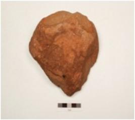 | Description / विवरण | A bifacial chopping tool made of quartzite, pebble, flat broad butt end flake scars on both surfaces, wavy cutting edge, cortex on one surface, plano convex in section. |