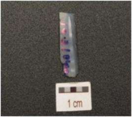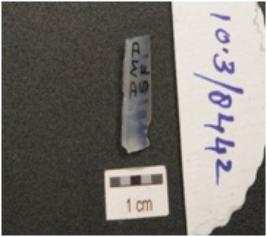 | Description / विवरण | A fragment of chalcedony blade, flake scars on the surface, partly retouch working edges on the lateral side, broken on one end and smooth surface. |