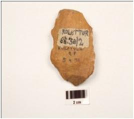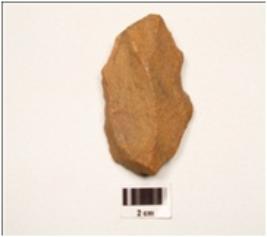 | Description / विवरण | A side scraper made on quartzite end struck flake with prepared platform, flake scars on dorsal side, bulb on the ventral side, use-wear marks on the sides. |