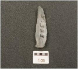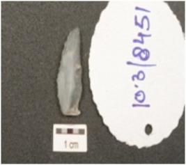 | Description / विवरण | A side scraper made on end struck ridge on dorsal side, partly retouch cutting edges, prepared platform and bulb on ventral side. |