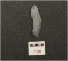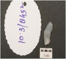 | Description / विवरण | A scraper made on end struck chalcedony flake, bulb on ventral side, blade scars on dorsal, prepared platform on proximal end and partly retouch cutting edges. |