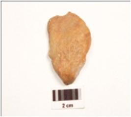 | Description / विवरण | An end struck utilized flake made on quartzite with prepared platform, use-wear marks on edges, rectangular in section. |