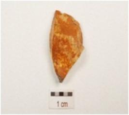 | Description / विवरण | A side struck flake made of chert with striking platform, triangular in section and use wear marks on edges. |