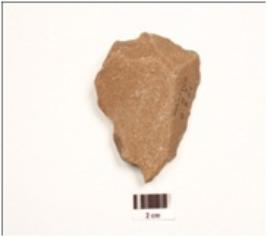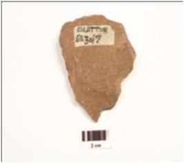 | Description / विवरण | A side scraper made on quartzite end struck flake with prepared platform, bulb on the ventral sides, flake scars on dorsal sides, irregular retouches on the working edges, lenticular in section. |