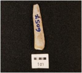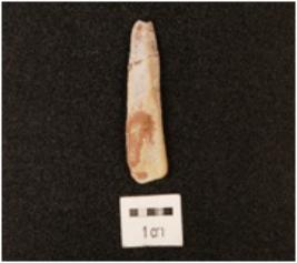 | Description / विवरण | A blade, made on quartzite with prominent mid-ridge on dorsal side, triangular in section, use-wear marks on cutting edge and prepared platform. |