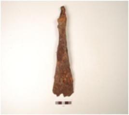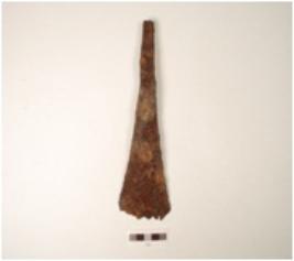| Description / विवरण | A chisel made by iron, rusted surface, one end broad with sharp surface but slightly broken, rough surface chemically treated. |