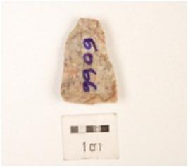 | Description / विवरण | A blade made on chert with double ridge on dorsal side, use-wear marks on cutting edge, prepared platform, bulb on ventral, broken along distal end and trapezoidal in section. |