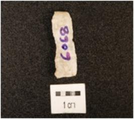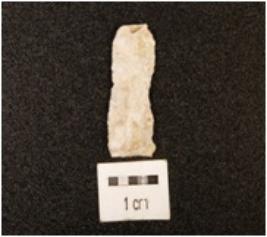 | Description / विवरण | A blade made on chert with prominent mid-ridge on dorsal side, prepared platform, bulb on ventral, use-wear marks on cutting edge and triangular in section, broken along the distal end. |