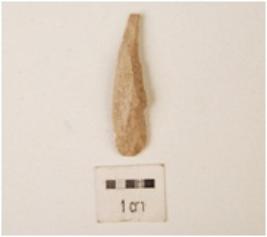 | Description / विवरण | A blade made on chert with striking platform, bulb on ventral, use-wear marks on cutting edge and triangular in section. |