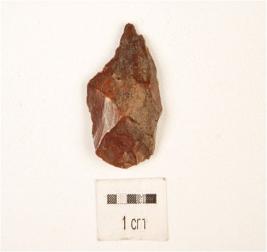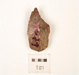 | Description / विवरण | A utilized flake, made on chert with flake scars on dorsal side, use-wear marks on working edge and plano-convex in section. |