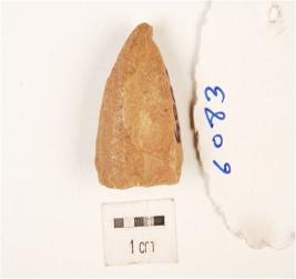| Description / विवरण | A core made on chert with flake scars on surface and prepared platform. |