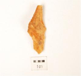 | Description / विवरण | A chert flake made on endstruck flake cortex intact on platform and prominent bulb on ventral side. |