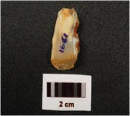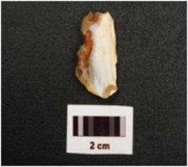 | Description / विवरण | A chert flake with cortex on surface and striking platform. |