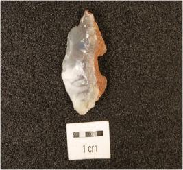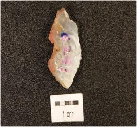 | Description / विवरण | A chalcedony utilized endstruck flake, prepared platform, cortex partly intact on the one side and use-wear marks along the cutting edge. |