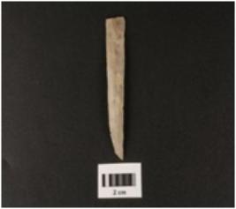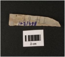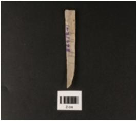 | Description / विवरण | A chert parallel sided blade with a double ridges, used wear mark on cutting edges, trapezoidal section. |