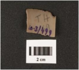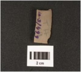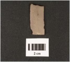| Description / विवरण | A chert blade with a mid ridge on dorsal side, triangular section, used wear mark on cutting edges. |