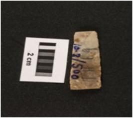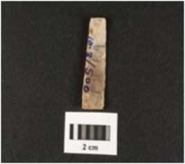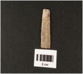| Description / विवरण | A chert blade with double ridges, trapezoidal section, used wear mark on cutting edges. |