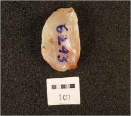 | Description / विवरण | A chalcedony core with flake scars on surface and prepared platform. |